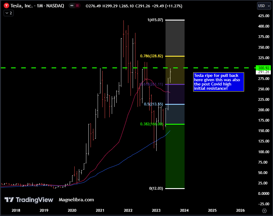 When we look at the TESLA longer term chart, we have to say that it looks heavy technically and despite the record revenues, we suspect sellers to profit take here and take some chips off the table: