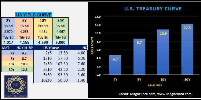 When we look at yesterday’s settles in the US yield curves we can see that the 5s/30 yield curve is 93.5bp and the 2s/30 is 107.3bp wide. We expect the 5s/30 to reach a +250bp by the end of this current rate cut cycle: