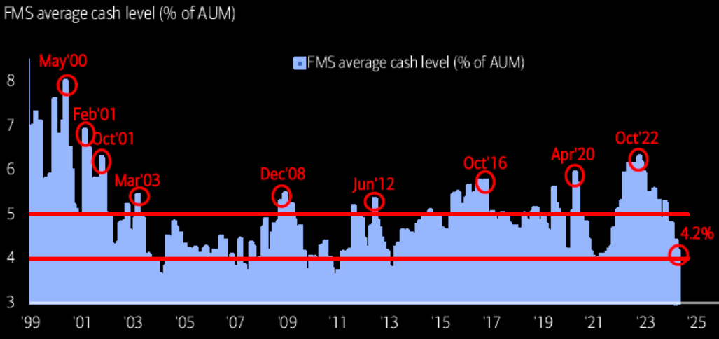We have further fundamental confirmation from BofA and the Fund Manager Survey of the average cash balance: