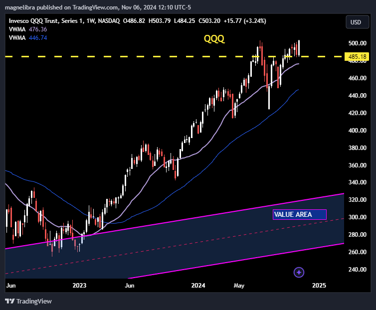 As far as technical's, well the volatility in the markets has led to a full retrace down and up of the range in the Nasdaq futures and QQQ: