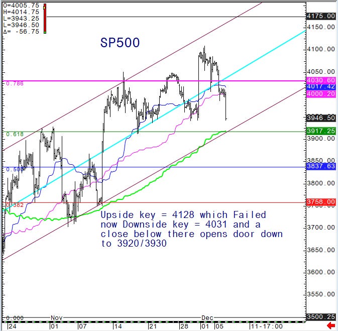Just wanted to post a quick SP Futures chart here, as we noted yesterday a close below 4030 would open the door to 3930/3920 area, well 3940 last. Both the Vwap and channel lows come right in around 3917 area. We would expect initial support to come in around these levels but don’t expect any bounce to last very long given the technical damage that has been done: