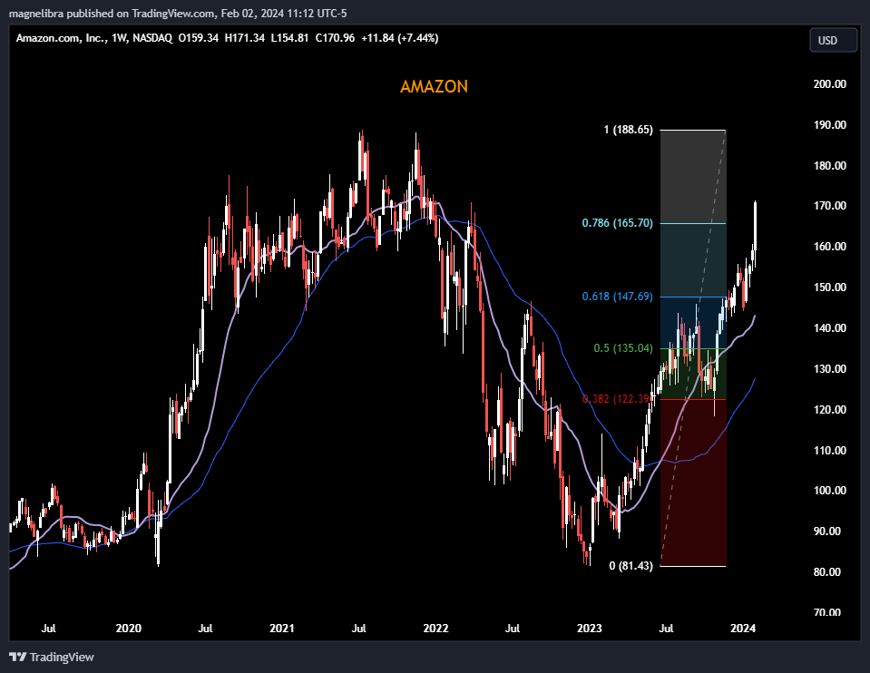 Next up we have Amazon where their stock jumped 7% overnight and continues to perform today holding at the $171 mark up nearly $12 on the day or 7.5%: