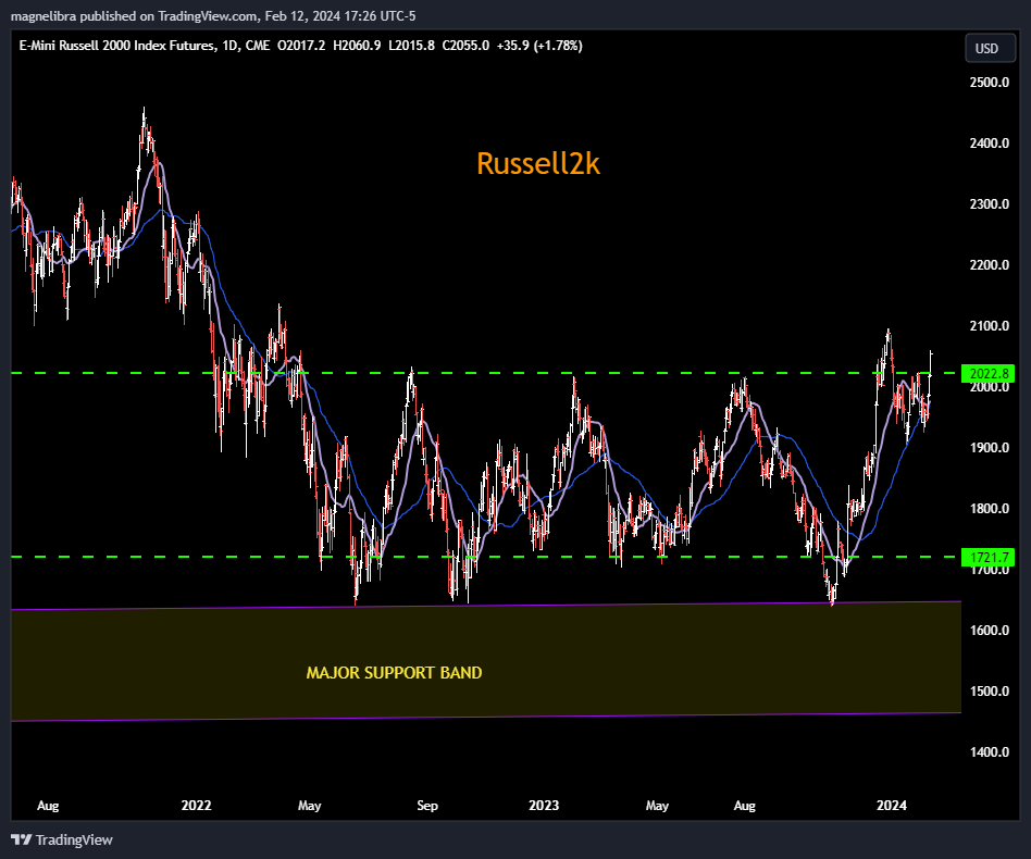 Two other technical charts we have are the R2K and the Nasdaq futures. First up the R2K you guys know we have that 2022 pricing level as our key upside area, well the R2K blew right through marching all day higher and higher. A close back below will recycle things back down but for now the daily is bullish: