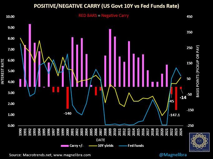 With yields rising and the FOMC cutting rates, we continue to see the transition of the negative carry situation that we have been in for nearly 2 years now!