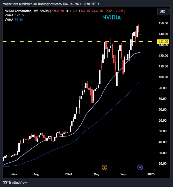 Nvidia reports on Wednesday after the close, this is honestly the big news of the week, with consistent beats, this one could really set the tone for the markets! We will look at it a bit closer tomorrow but the 11/22 options using the 140 strike showing a breakeven move of about a $12.70 move or 9%. Massive call interest at $150 and above and some decent and recent open interest increase in the 125 puts at $1.50. $133 is our line in the sand for the bulls to defend, below there should see continued profit taking: