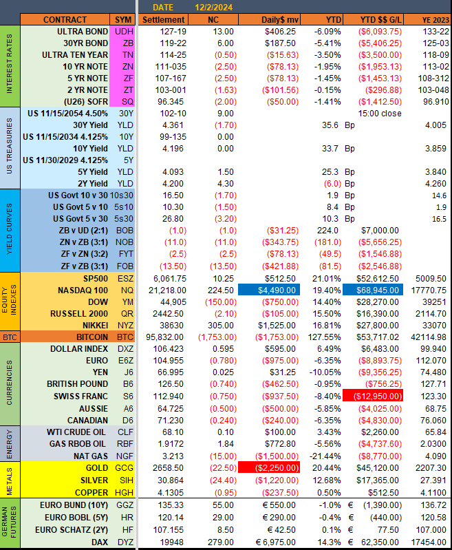 Everything seems well bid for the equities to start the month. As far as the other markets settles, bonds were a mixed bag, the Nasdaq the big winner and Gold the big loser on the day: