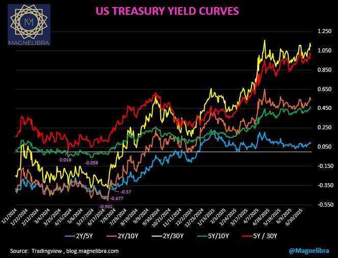 Alright we also want to touch upon the steepness of the U.S. Yield Curve. Our earlier post today focused upon the 5s30 curve. Here we have the entire curve from 2s on out. We took some flak on X about not including the T-bills but look, that is controlled by the Fed directly and we don’t even bother. We look forward and the 2Y on out satisfies this intent: