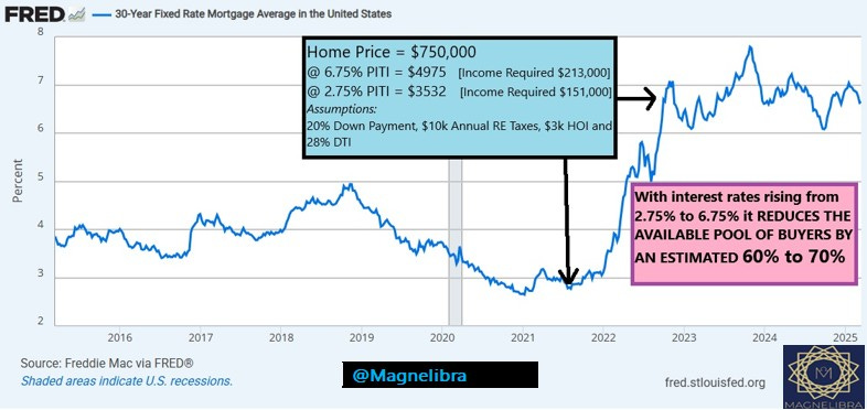 For my realtor types out there, please review this next chart. Please inform your clients, given today’s rates and adding today’s high cost of, well everything, the pool of buyers has shrunk by about 90%: