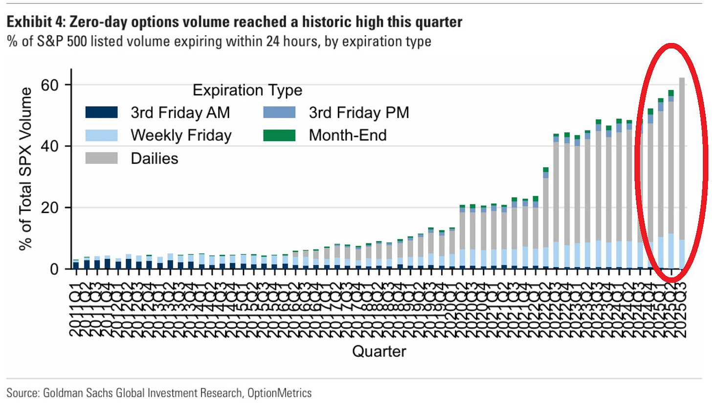 One other thing we want to make you aware of is the fact that zero day options trading continues to gain steam. We view this as nothing more than gamblers paradise, dangling the carrot in front of retail to play the game with visions of wealth and get rich quick! Look at this chart, it is crazy, the fact that regulators are ok with all of this, seems ludicrous, we see zero value add to products like this, this is nothing more than large fund capital extraction from the unsuspecting retail space: