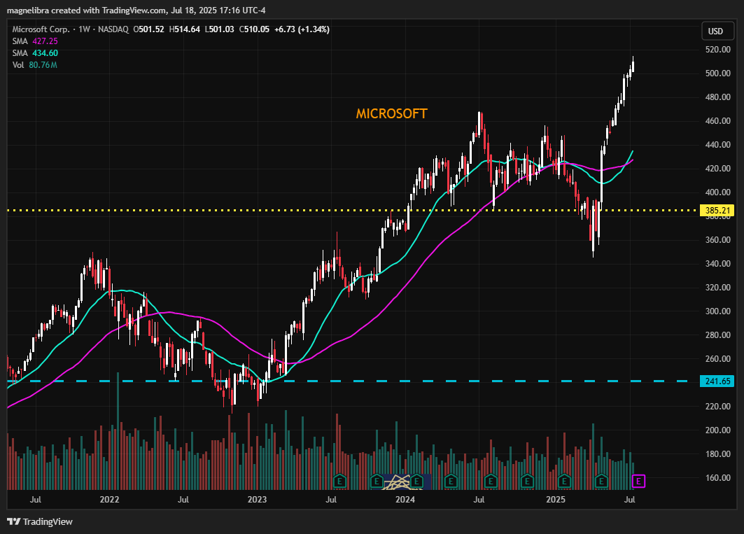 The mean reversion when it does come in that SP/NQ spread will be epic, but for now money continues to flow to all the high flying tech stocks, evidenced by Microsoft here: