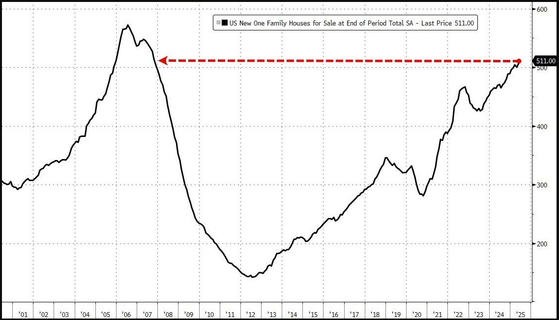 This morning we had a little housing data and this next chart showing the supply of new homes for sale is now up to 511k, highest since 2007. That really shouldn’t be a surprise to anyone given affordability at this point: