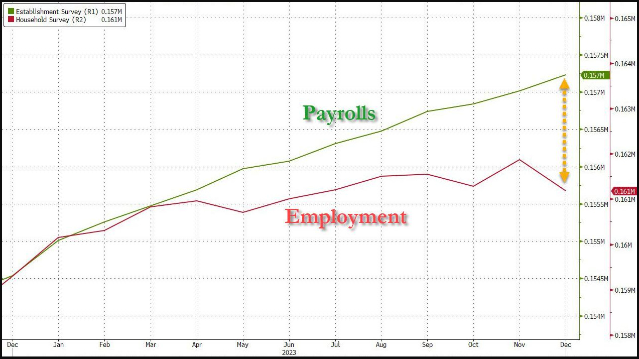 We can also see how the Payroll prints continue to diverge from the Establishment Survey, so how long can the administration keep this smoke and mirrors up:
