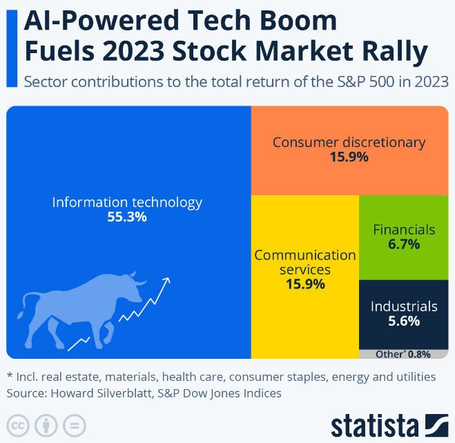 Staying with the Equity theme, Statista put this nice graphic together showcasing the sector contribution to the overall return of the SP500 last year: