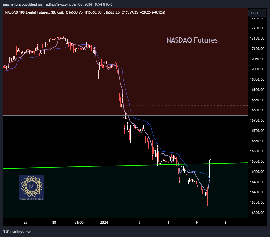 As far as the equities, lets look at the Nasdaq futures reaction once NFP hit the Nasdaq dropped by about 100 points to the lows at 16334.25 but rallied smartly off that area and continued to rally into the ISM number. The green line on this chart is the top of the trend channel that we follow on the weekly and its now back outside of it, so this is a positive sign. A close this week above 16550 is key so lets see how the day finishes out. Ultimately we would like for the bulls to get it back into the maroon area which would take a move back above 16777, but first things first: