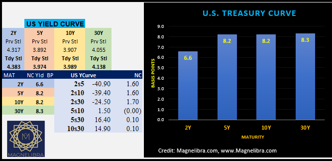 Ok on to today’s settlements the bond market continues to get hit and we saw another parallel shift in the US yield curve today as the 2s were +6.6bp and the rest of the curve 5s on out were +8.2bp or so respectively: