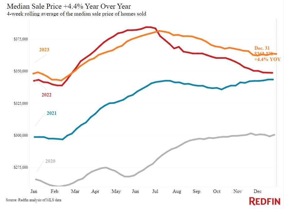 What this shows is that the median sale price was +4.4% YoY, which really isn’t a surprise considering the absolute lack of supply across 2023 available for sale. Another data point we want to point out is the prior 4 years starting level. This is a direct result of DC and FOMC fiscal and monetary stimulus. The money that gets plowed into the economy no matter whose hands it starts in, ultimately ends up in the top 1% coffers. The money accumulates to those who need it the least because they are not bound by the natural laws of economics like the bottom 80%. Inflation does not effect everyone equally. We have said it time and time again that monetary printing leads to ever increasing asset prices, whether its equities or real estate. So from 2020 till now we can see the starting point rise from $260k to $348k an increase of 33.8%. This is a direct result of the $6T in stimulus, nothing more. These are new plateaus that raise the cost of shelter for everyone and not just home purchases but rentals as well.