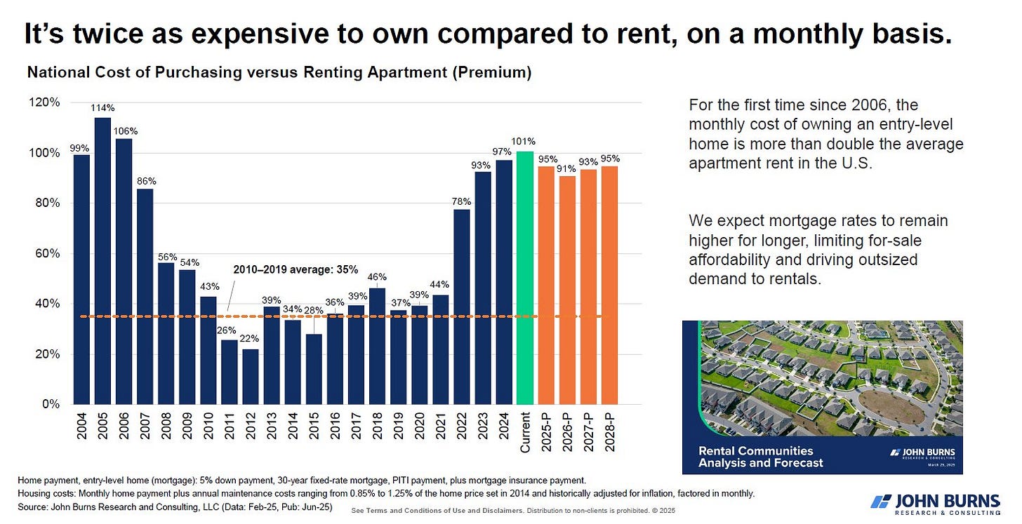 Another data print that has caught our eye is the own vs rent comparable, which as John Burns Research points out, that for the first time since 2006 an entry level home is now more than twice the apartment rent. This is truly staggering and highly unsustainable: