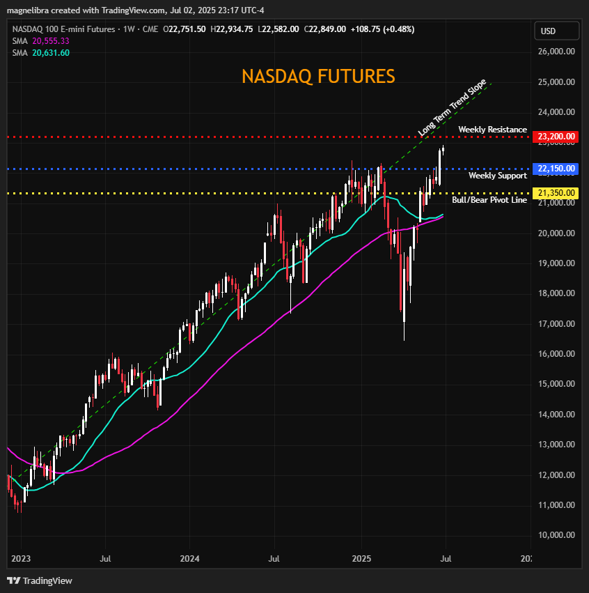 The Nasdaq futures are still trying to march back to their long term slope line lets see how the data comes out tomorrow, next directional bias confirms come outside our weekly resistance or support areas, for now bulls have the edge: