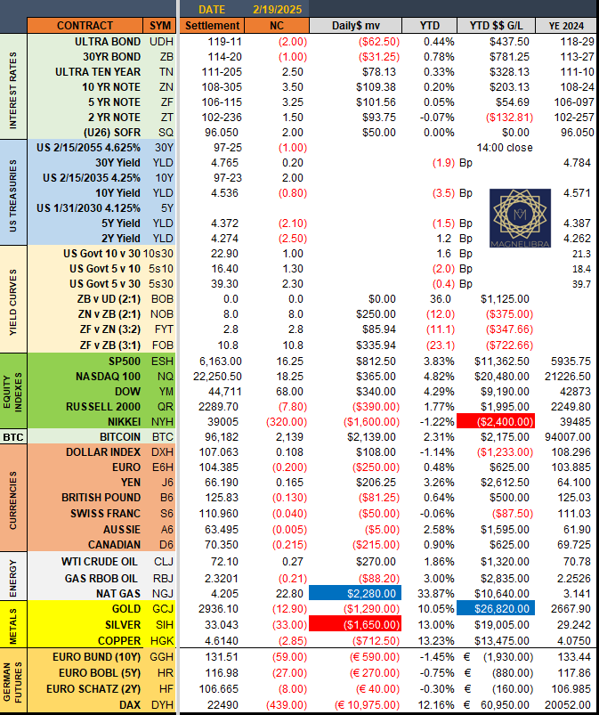 Ok let’s get to yesterdays settlements and rolling changes data: