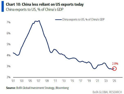 One last chart we wanted to share from EEAGLI was this chart of Chinese exports to the US. Honestly if this data is correct, it kinda caught us off guard, we thought Chinese exports to the US as a % of their GDP was higher, 2.8% seems awfully low. With China’s GDP around $18T US, their exports value is roughly $504Bn with the U.S.