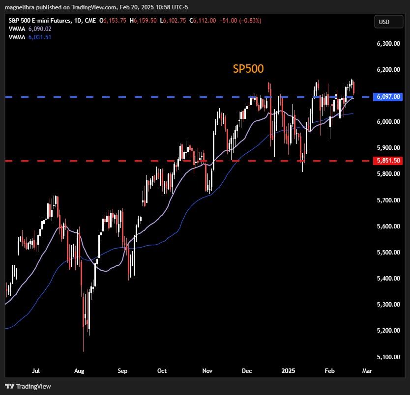 As far as the SP500 its been all sellers out of the gate here and were sure the bank news and Walmart not helping things here. The SP500 futures new line in the sand for the bulls on the daily is 6097. They risk dragging in further mechanical selling below there: