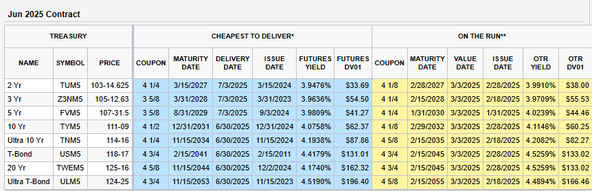 Ok onto the markets now, we rolled the March fixed income futures to June from March. These are the quarterly futures expiration rolls and the ratio’s for our spreads, the ones we follow didn’t change. The CME Group puts out great data in regards to US bond market data, including all the DV01s which are paramount to defining hedge ratios: