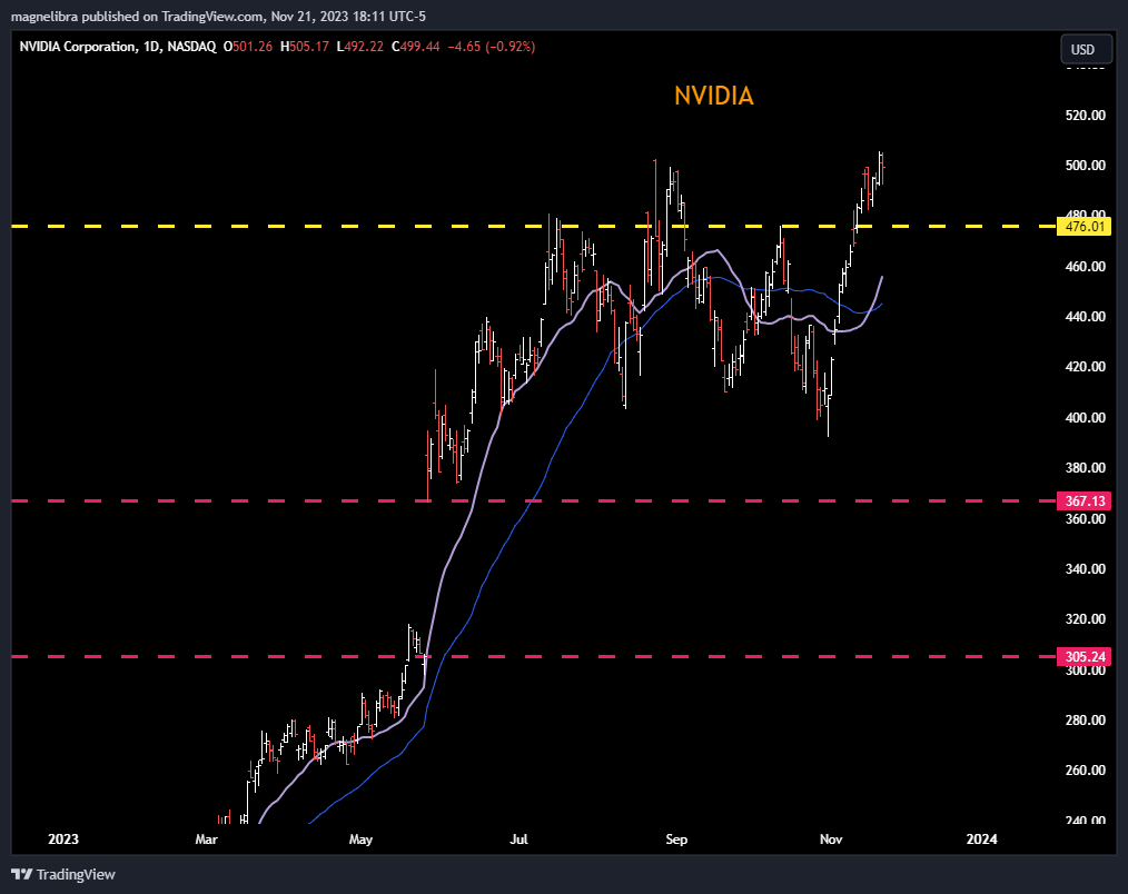 We know the overall tone in equity land has been straight up, but earnings like this tend to cause some to focus on the result. Tomorrows close in Nvidia will be highly scrutinized, $500 is the marker, a close above and bull case still in place. A close below could see further probes down and a more consolidative tone. So keep an eye on this one for tomorrow. Ok we may be limited in the delivery of our note the next couple of days to enjoy the Thanksgiving celebrations. We hope you enjoy time with your family, friends and make the most out of all the time away from these chaotic markets.