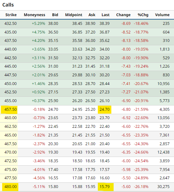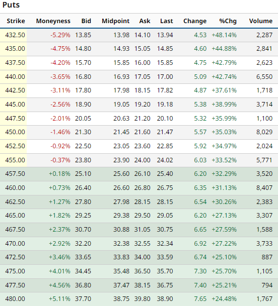 460 Puts = 5,048, 450 Puts = 3,824, 440 Puts = 4,752, 420 Puts = 10,412