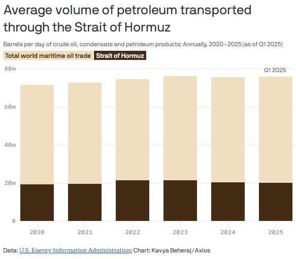 Axios posted this graphic on the amount of oil transported through the Straight each day:
