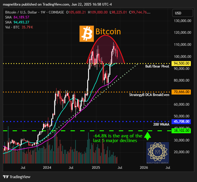 As far as the chart we suspect this weeks first resistance to be at $104000 and initial support at $98500, which we just hit there this afternoon: