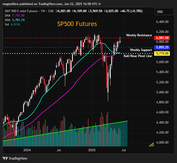 As far as the equity futures only a weekly close above 6081 area in the SP500 will flip our better seller theme here: