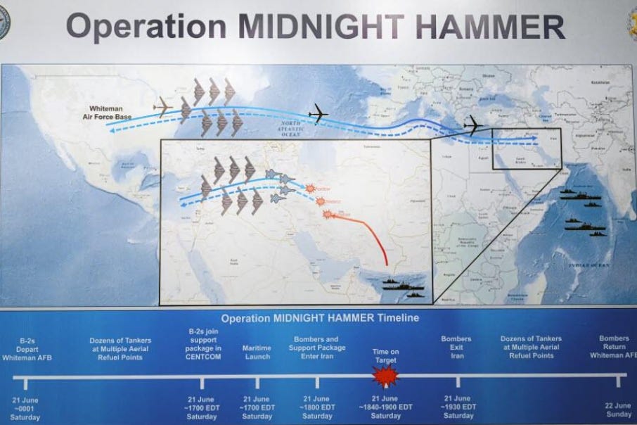 According to today’s briefing, held by Chairman of the Joint Chiefs of Staff Gen. Dan Caine and Defense Secretary Pete Hegseth at the Pentagon in Arlington, Va., on June 22, 2025, they announced that more than 125 military aircraft participated in “Operation Midnight Hammer,” which targeted 3 suspected Iranian nuclear weapons facilities. Vice President JD Vance also said that he believes that U.S. airstrikes have set back the regime’s nuclear program. ( A story we have been hearing for 4 decades now?)