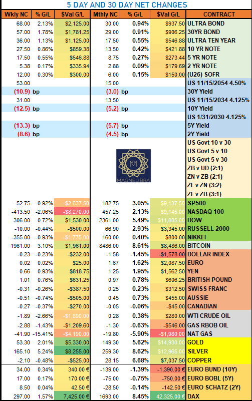 5 and 30 day net changes: