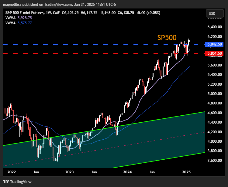 Ok as far as the indexes the SP500 and the Nasdaq futures have pretty much stayed smack in the middle of their longer term weekly ranges. The SP500 is actually technically in a stronger position with the weekly closing above 6042 barring some drastic late day sell off today: