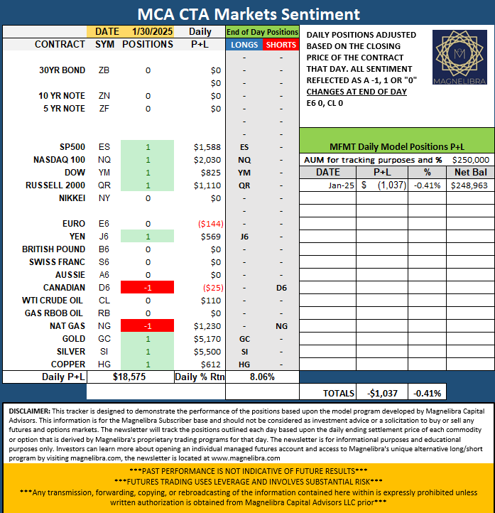 As far as the MCA CTA Markets Sentiment indicator the Euro and Crude moved to Neutral: