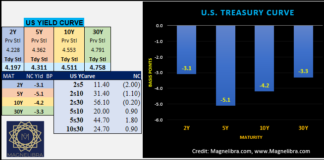 As far as yesterday’s bond market and its yield curve settlements the 5y was the strongest sector dropping 5.1bp: