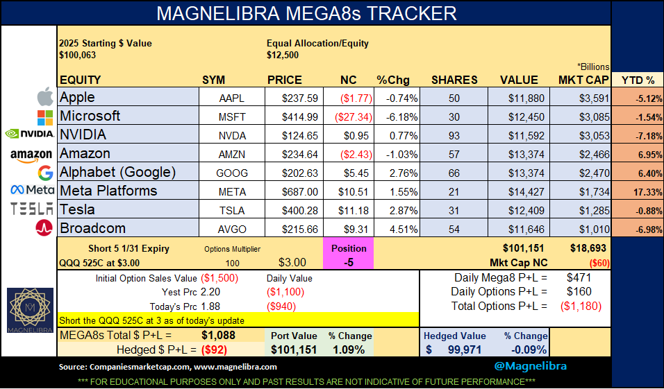 MEGA8s were pretty much unchanged as a group but MSFT was hammered -6.1%: