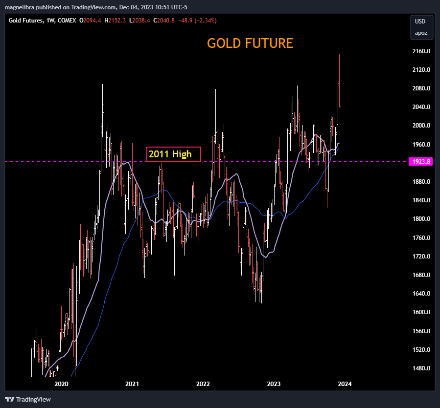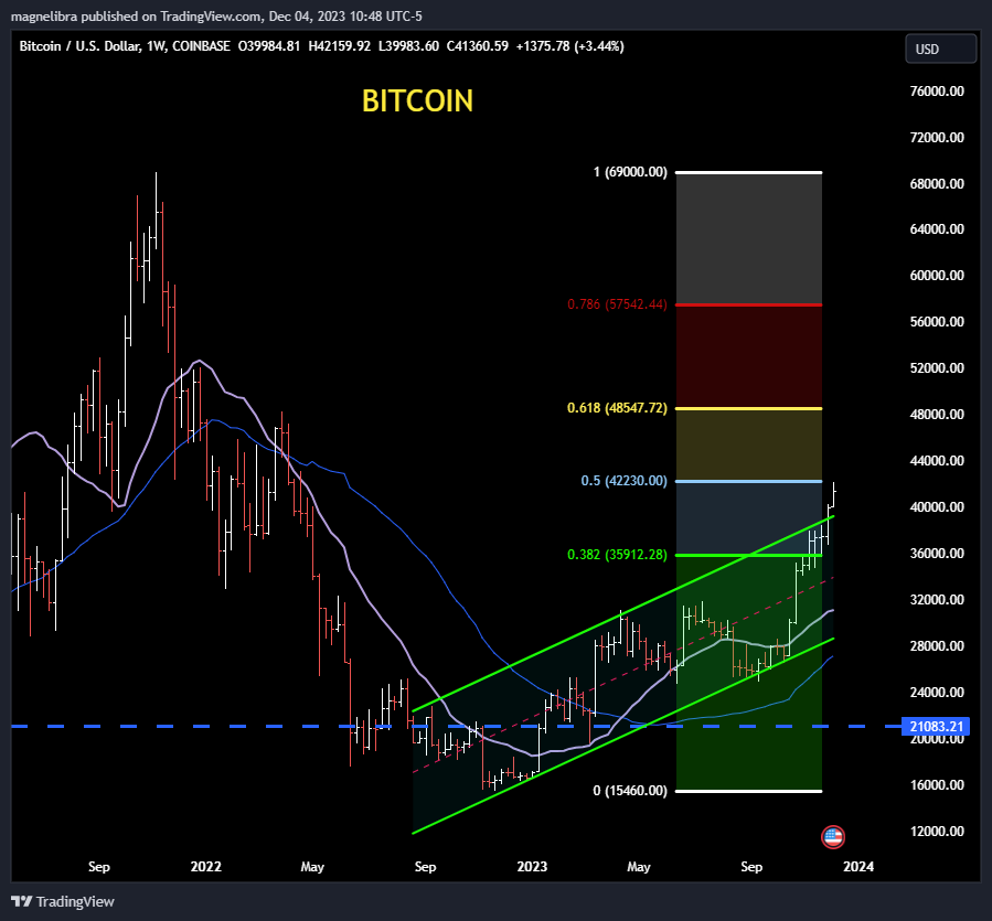 Alright, let’s first begin with Bitcoin as we know that the usual Thanksgiving table talk has boosted the price here driving most likely new players into the market. We are better patient buyers here and Magnelibra will never advocate for chasing Bitcoin higher, its just not the correct strategy. The correct strategy is a slow and steady dollar cost average and let the momentum gamblers chase things. We have watched this from the beginning and we know better. All the talk now is that once ETFs are approved, this thing will take off. Yes we agree fundamentally with the premise that a fixed supply of anything vs a healthy demand will vis a vis, rise in price. We will not dispute that claim, but rather, we will question the veracity of that appetite from main street that truly doesn’t even want to play in this arena. Remember the days of Jaime Dimon of JPMorgan Chase and the rest of Wall Street demonizing Bitcoin, now, all of a sudden they are all in?
