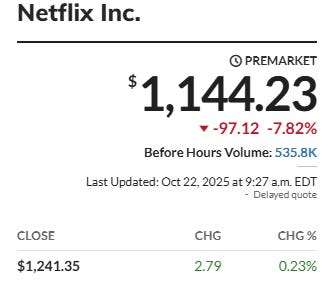 Good Morning MTR readers, we hope you had a chance to look at last nights post announcing our new offering and insights into the digital currency space. If you didn’t read it please do and share if you can. Alright we will be posting our daily update shortly but wanted to just show the premarket action post earnings for Netflix and Intuitive Surgical.