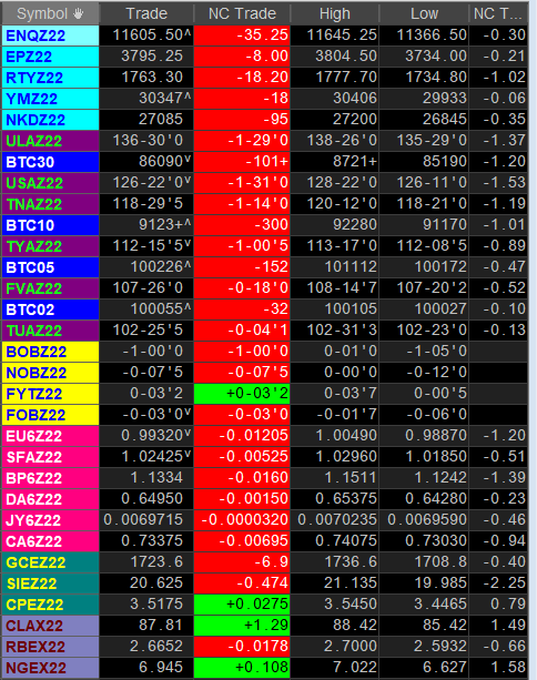 With the overnight selloff beginning right out of the EU open gates, early morning action was heavy in equities and bonds as both were hit hard. Nasdaq futures were down nearly 350 on the lows but have since recovered to almost unchanged as buyers as we noted would be there on pullbacks. Here is a quick overall market view courtesy of CQG: