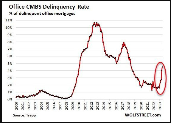 We also saw this CMBS chart, this arena is a gathering storm of trouble and higher interest rates, should force higher cap rates, write downs, levered fire sales etc. However there is a plethora of well capitalized buyers awaiting discounted pricing were sure: