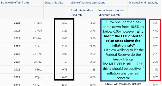 What a week it has been thus far hasn’t it? There is a lot to unpack here and we have global central banks all adding to the multitude of future rate scenarios. This week thus far we saw the FRB keep rates on hold, we saw the PBOC panic cutting the RRR, SLF& MLF and announcing further economic stimulus, then the ECB raising rates by 25bps, to which we cannot fathom why they are slow walking this and not following the FRBs lead here. Then again we all know the global central banks are somewhat working in coordinated fashions, so the FRB is doing the heavy lifting right now, here is the graphic on the ECBs policy moves we shared on our LinkedIn: