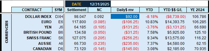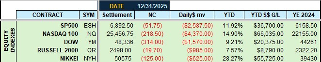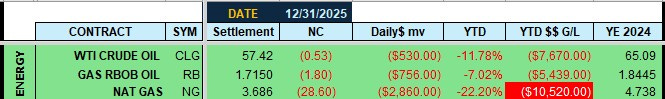 Nat Gas, WTI Crude Oil and the USD index round out the bottom worst performers for 2025 -22.2%, -11.8% and -8.2% respectively: