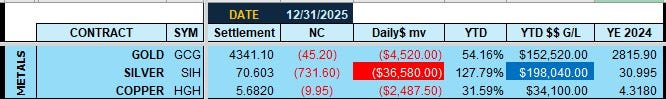 We hope everyone has had a wonderful holiday break and now its time to get back to the data. No we wont comment on the removal of Chavez in Venezuela as this was well telegraphed given the build up of forces in the region. However it will add to the destabilization that we suspect is to come in 2026. As far as 2025 well it was a very strange year, for the first time in a long time, real money, that is gold and silver, have finally awoken to the U.S. Govt’s debt printing frenzy and have begun discounting this printed prosperity.