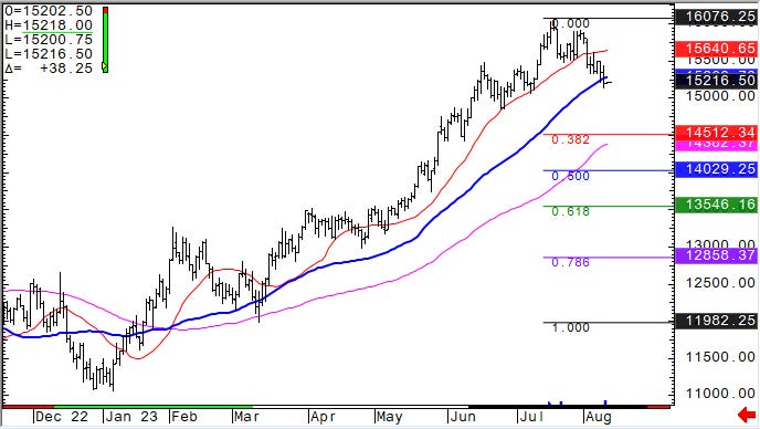 When we look at the fib retracements the 14512 area is the 0.382 so we are some 700 points or so away: