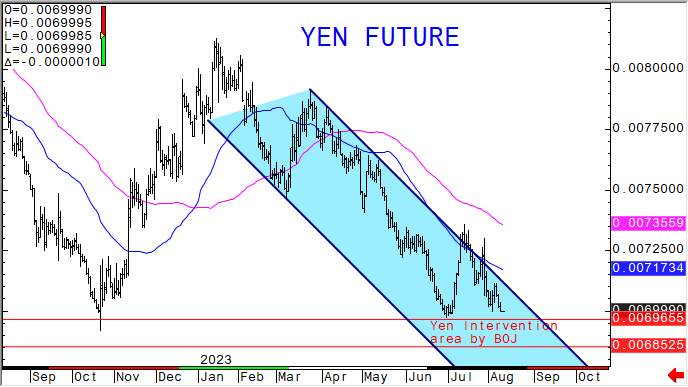 We also wanted to take a look at the Yen, its getting close to BOJ intervention areas again: