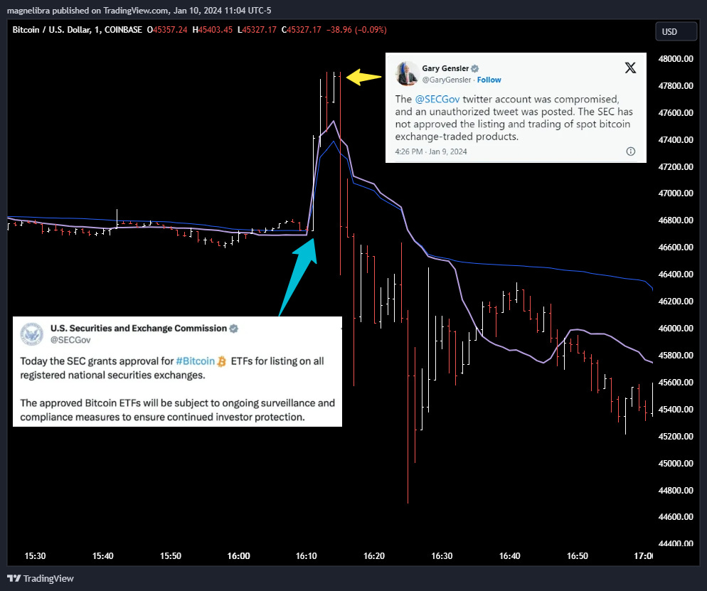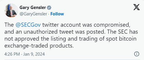 Then 15 minutes later Gary Gensler the SEC Chair posted on his own X account that the SECGov account was “Compromised!”
