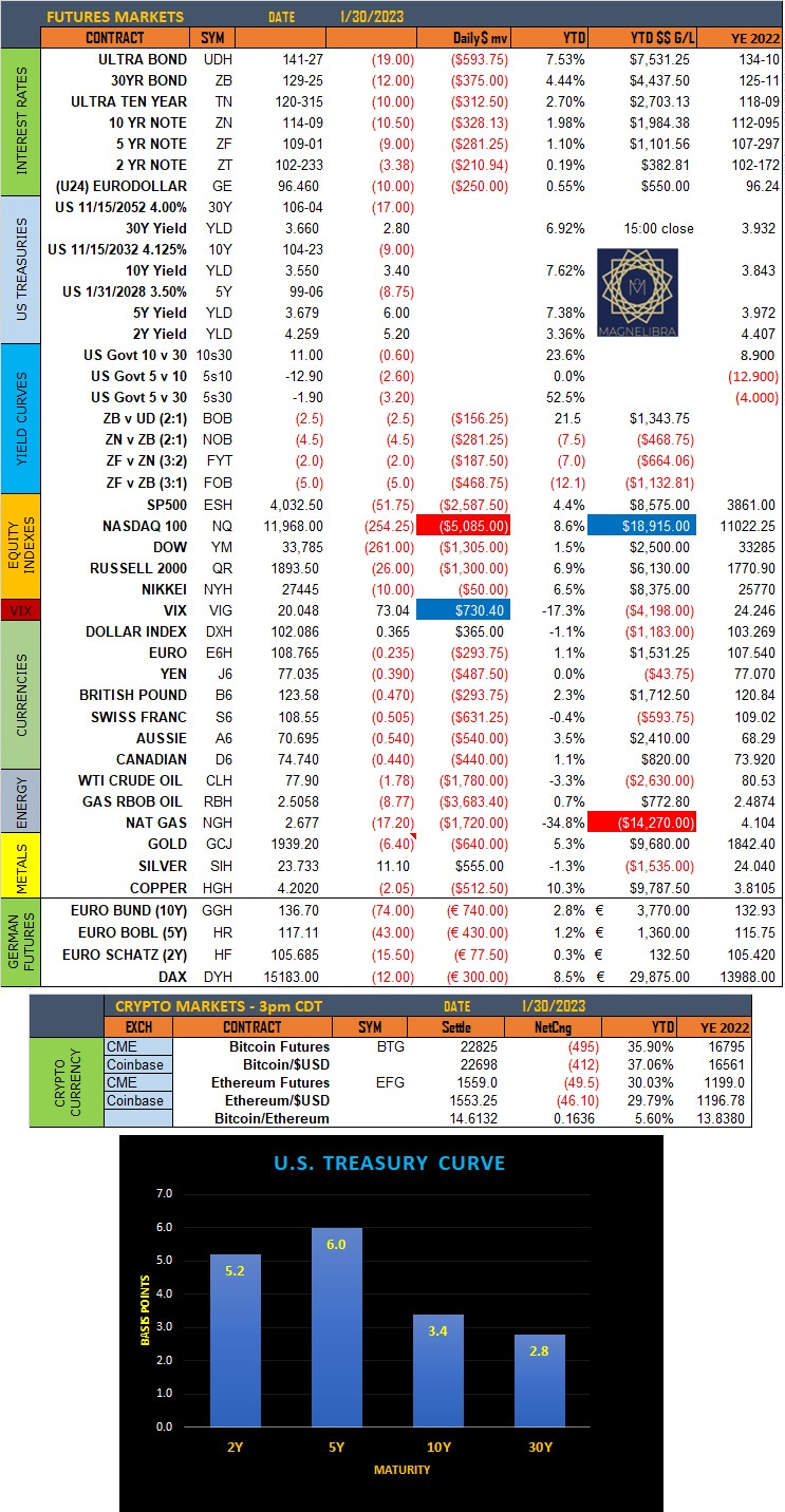 Settlements for Mon January 30th 2023