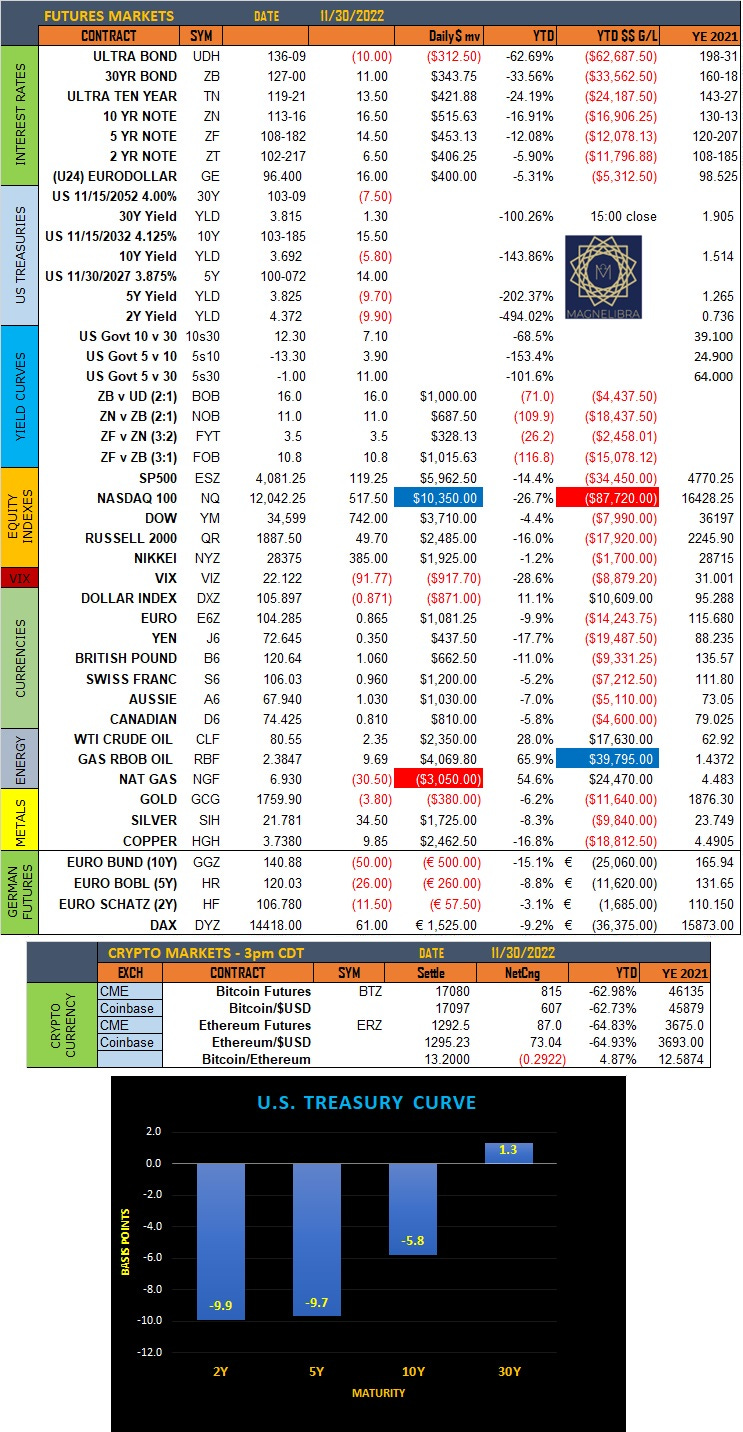 Settlements for Wed November 30th 2022
