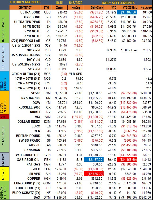 Settles for June 2nd 2020Futures & Cash End of Day PricesMike AgneJun 02, 2020∙ PaidShareSubs, Here are the end of day levels for your reference:Continue reading this post for free, courtesy of Mike Agne.Claim my free postOr purchase a paid subscription.PreviousNext